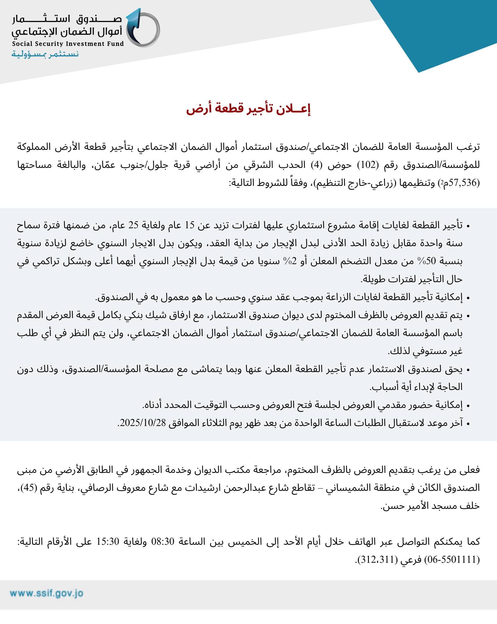 تأسست شركة الضمان لتطوير المناطق التنموية عام 2009 كشركة مساهمة خاصة مملوكة بالكامل للمؤسسة العامة للضمان الاجتماعي لتكون الذراع الاستثماري لصندوق الاستثمار لتطوير البنية التحتية والخدمات والتسويق لمنطقة الملك الحسين بن طلال التنموية في المفرق ومنطقة اربد التنموية