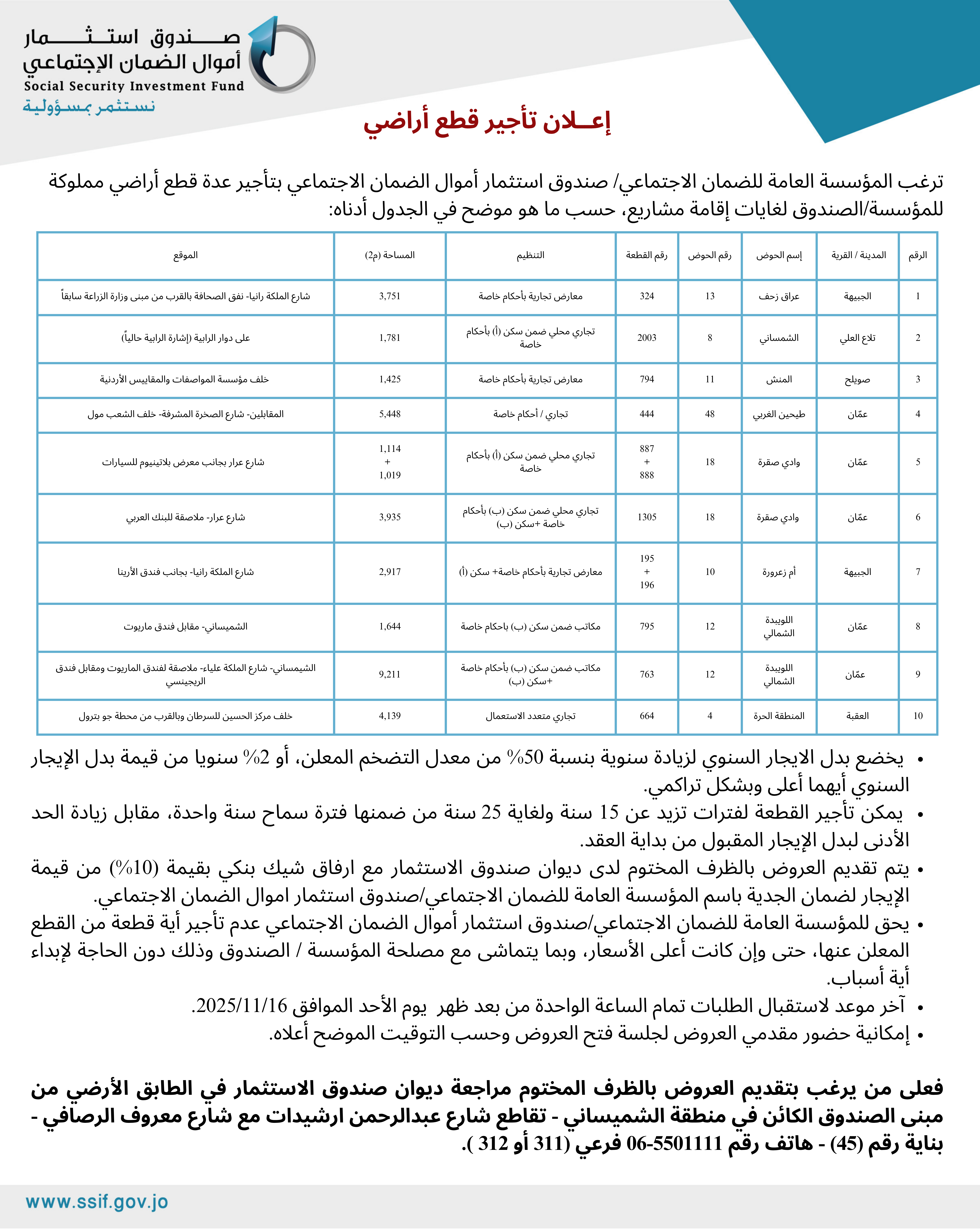 إعلان تأجير قطع أراضي