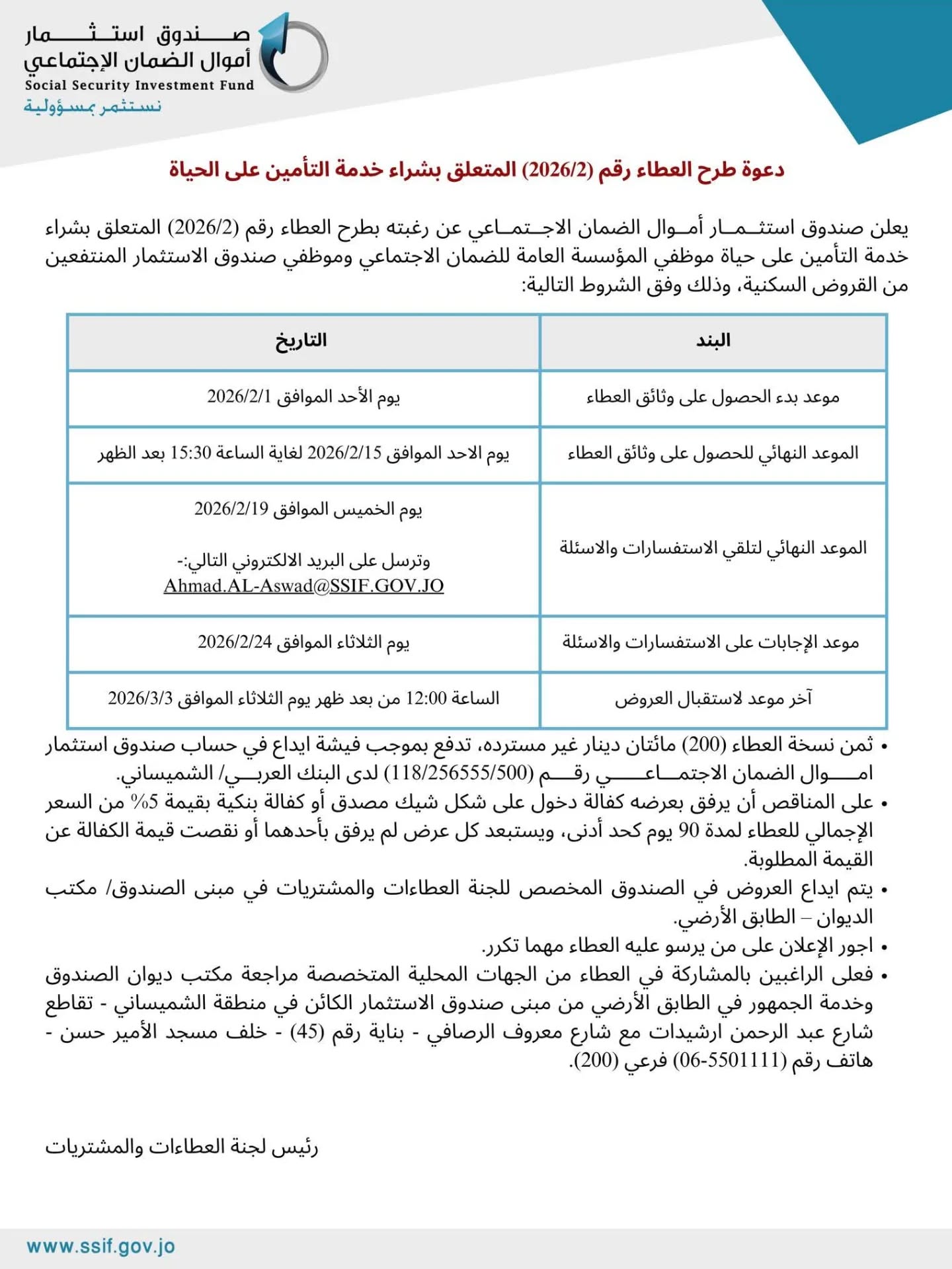 اعلان طرح العطاء شراء خدمة التأمين على الحياة