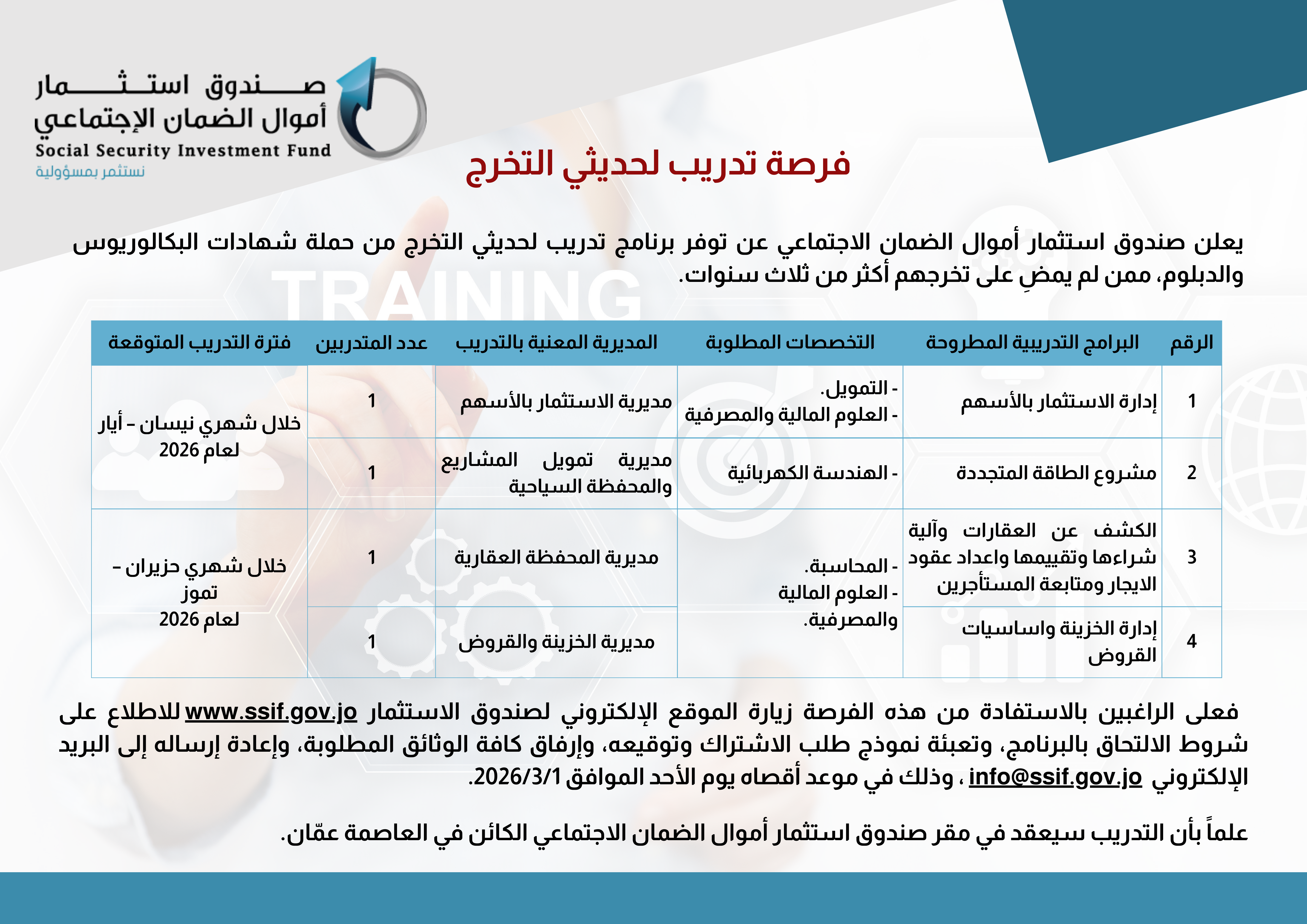 يستثمر الصندوق من خلال محفظة القروض في القروض المتوسطة والطويلة الاجل ومن خلال الاقراض المباشر للحكومة الاردنية ومؤسساتها